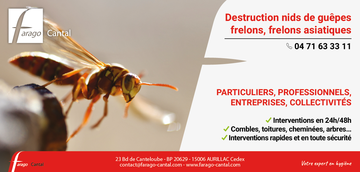 Faites appel à FARAGO Cantal pour la destruction de nids de frelons ou de guêpes sur Aurillac et sa région